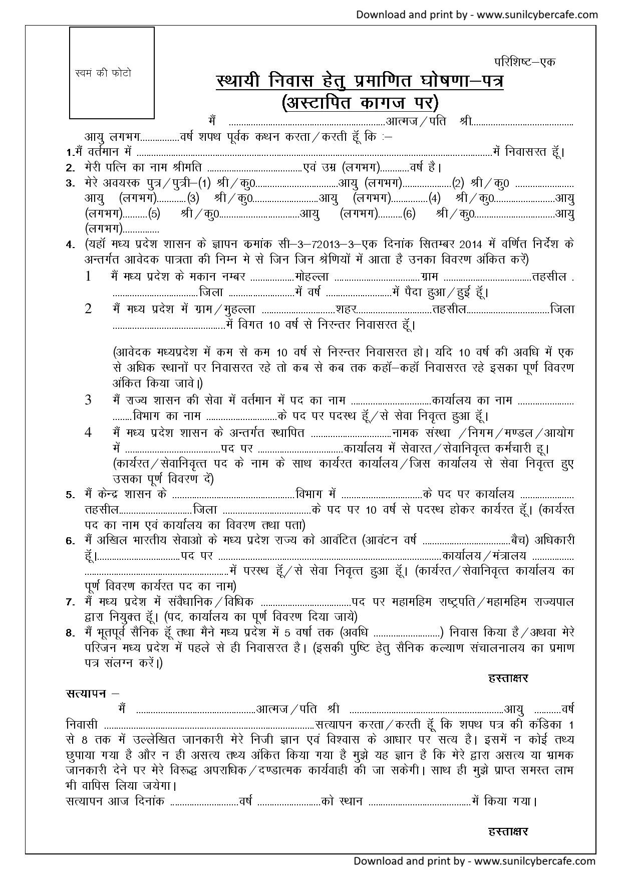यह एक सरकारी दस्तावेज होता है जो यह प्रमाणित करता है कि व्यक्ति Madhya Pradesh का स्थायी निवासी है। इसे Domicile Certificate भी कहा जाता है।